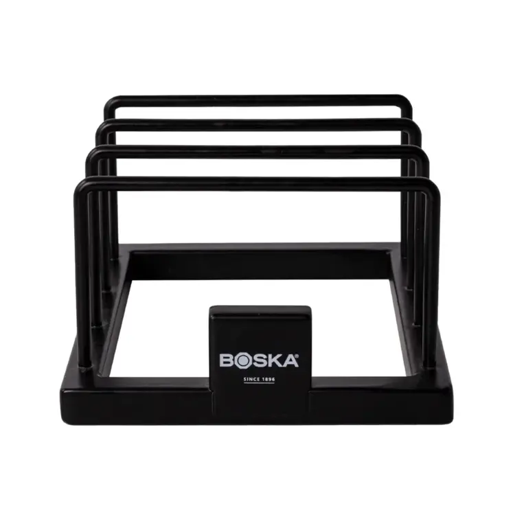 Predveďte svoje servírovacie dosky BOSKA s týmto stojanom na servírovacie dosky. Tento praktický stojan ponúka miesto pre 3 servírovacie dosky BOSKA vo veľkostiach S až L.