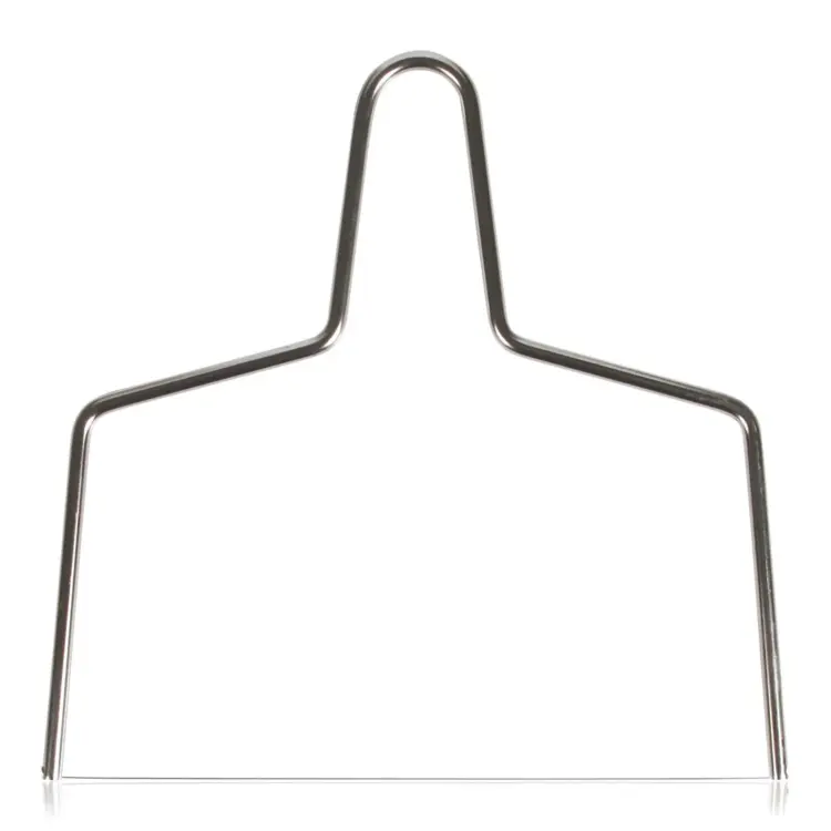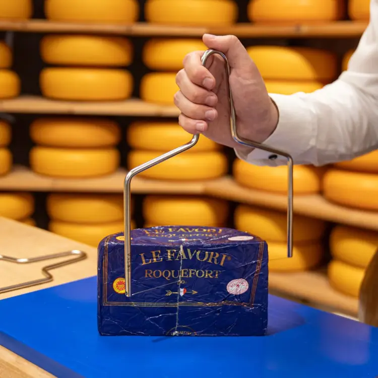 Roquefort veľkosti L má šírku 240 mm, rovnako ako XL. To znamená, že perfektne pasuje do krájača na mäkký syr (602020). Struny sú dostupné aj vo veľkostiach M a XL. S ľahkosťou zvládnete každú výzvu s mäkkým syrom! Vhodné do umývačky riadu. Zabráňte krížovej kontaminácii čistením medzi krájaním rôznych druhov syra. Ľahko čistí a je vyrobená z nehrdzavejúcej ocele. Najlepšie je umývať ju ručne. Praktický nástroj. Roquefort veľkosti L je praktický nástroj, ktorý by mal mať každý profesionál v syrárstve. Sú dostupné aj vo veľkostiach M (602614) a XL (604000). Pridajte si k objednávke zodpovedajúcu sadu 10 drôtov na strunu Roquefort s dĺžkou 240 mm (602510).