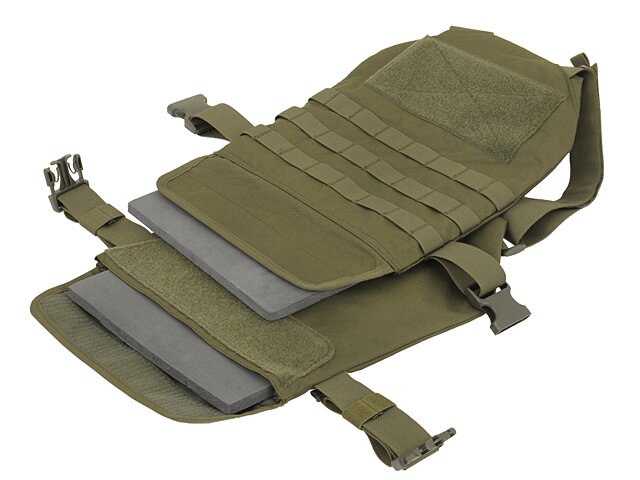Ultraľahký nosič platov navrhnutý tak, aby poskytoval jednoduchú a lacnú ochranu. Má tri rady popruhov MOLLE / PALS pre modulárne sumky, 2 panely na suchý zips na prednej a zadnej strane vesty, 2 ľahko prístupné vrecká na štandardné pláty, nastaviteľné ramenné popruhy a bedrové popruhy s rýchloupínacou prackou.