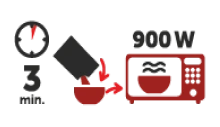 3. Preložte jedlo z vrecúška do vhodnej nádoby a zohrievajte cca 3 min v mikrovlnnej trúbe.