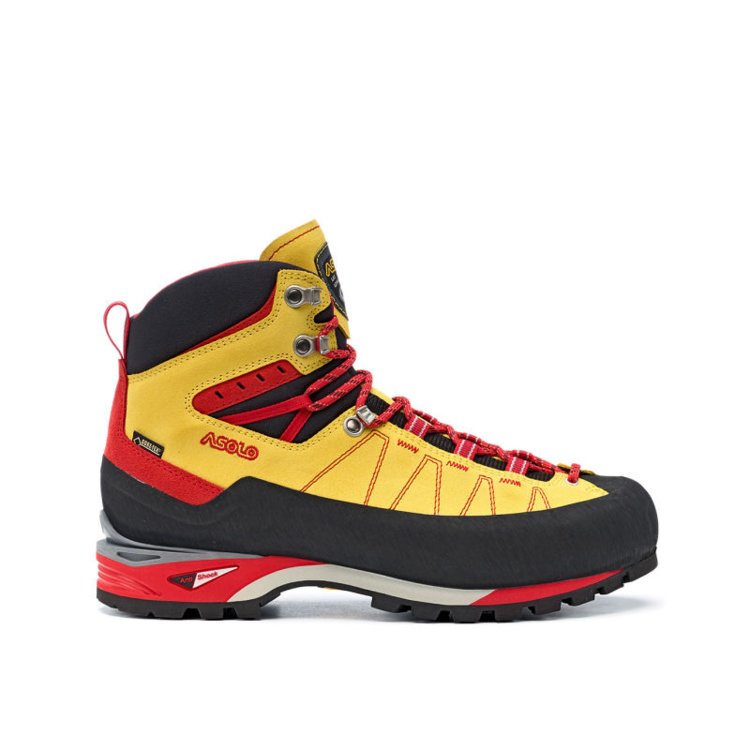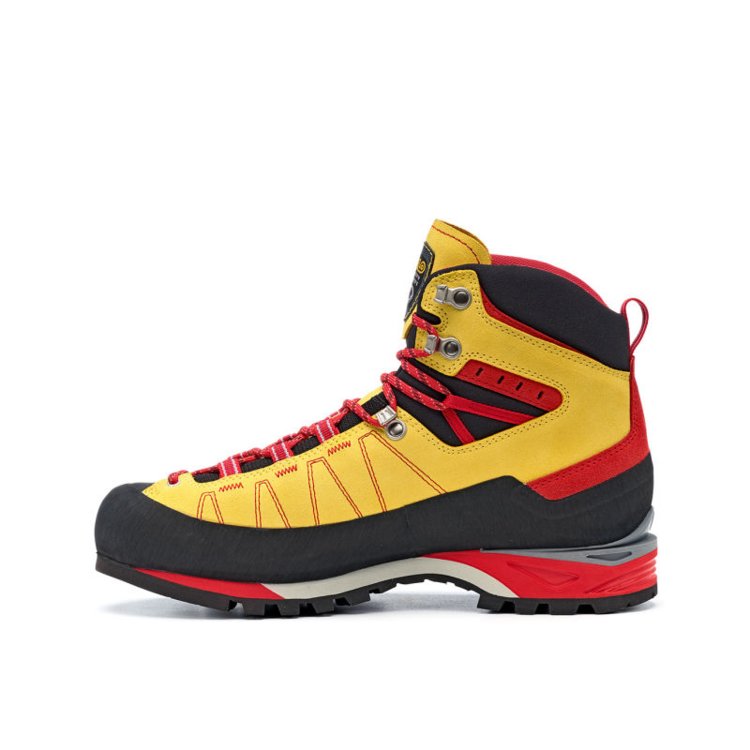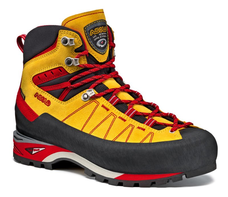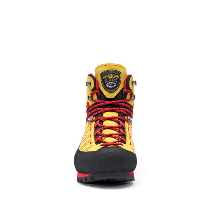 Podrážka Vibram Mulaz z gumy a samočistiacim designem vzorku. Gumový lem po celom obvode topánky pre perfektnú ochranu zvršku pred poškodením. Možnosť upnutia poloautomatických mačiek. Asobrake systém pre uľahčenie náročných zostupov. Výstuha Asolo Spiky - nylon + sklené vlákno.