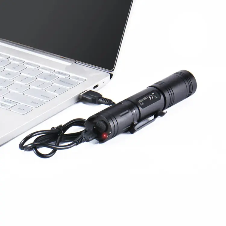 USB nabíjanie a indikátor: Táto ručná baterka má vstavaný USB nabíjací port pre rôzne USB zariadenia. Obsahuje tiež varovanie pri nízkej batérii a ochranu proti preťaženiu, aby bola zaistená vaša bezpečnosť. Nabíjací port má vodotesnú zátku a tesnenie pre dvojitú vodotesnosť. Svetlo vedľa nabíjacieho portu indikuje stav nabíjania: Plné je zelené, Nabíjanie je červené.