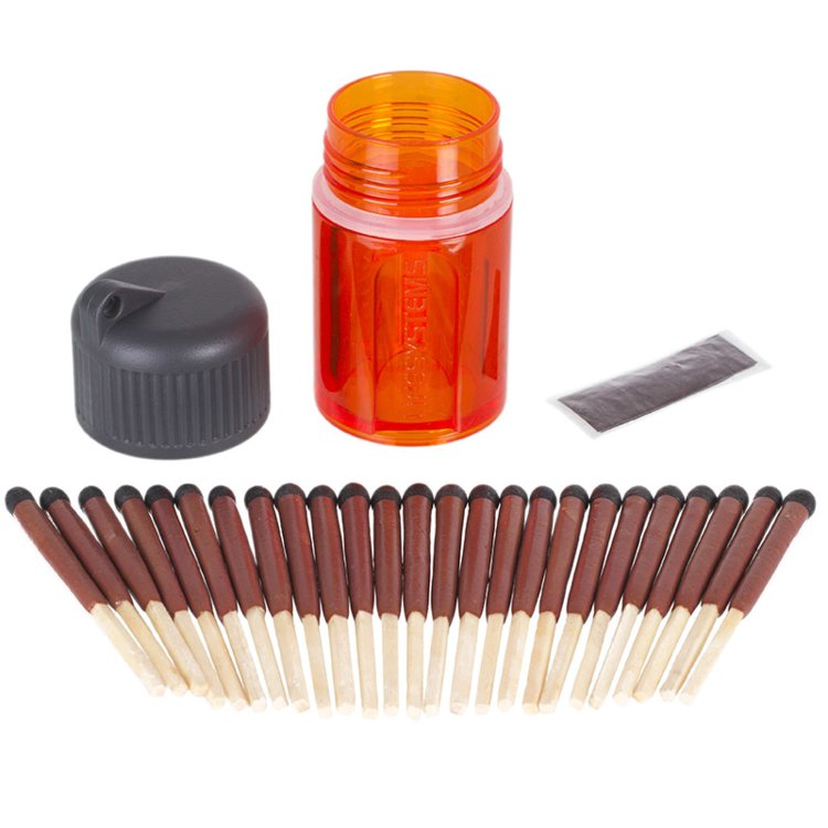 Windproof Matches sú špeciálne outdoorové zápalky, ktoré ľahko zapálite v silnom vetre i daždi a nikdy vás tak nenechajú napospas rozmarom prírody. Každá zápalka má na povrchu tenkú vrstvu vosku, ktorý bráni nasiaknutiu vody. Pokiaľ po zapálení ponoríte zápalku do vody (silný dážď), po vybratí (1s) sa zápalka opäť sama rozhorí. Balenie Windproof Matches obsahuje 25 zápaliek v polykarbonátovom puzdre s tromi škrtadlá umiestnenými pod závitom a na bokoch puzdra.