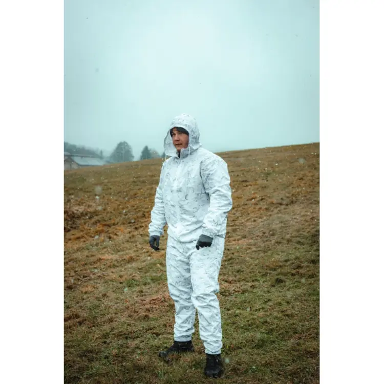Zimný maskovací oblek je tým správnym spoločníkom do zasneženého prostredia, a preto je ideálny na taktické operácie alebo lovecké výpravy v zasneženom teréne. Nielenže v ňom budete dobre vyzerať, ale zároveň vás dobre ochráni pred nepriaznivými vplyvmi počasia.