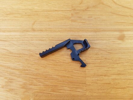 Zväčšenie naťahovacej páky je vyrobené CNC frézovaním z bloku materiálu leteckého duralu EN AW 7075 T651 . Je to v podstate "návlek", ktorý sa nasadí na naťahovaciu páku airsoftovej zbrane typu AR15.