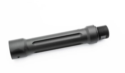 Predĺženie hlavne umožňuje použitie dlhšej vnútornej hlavne alebo inštaláciu tlmiča alebo tlmiča plameňa.