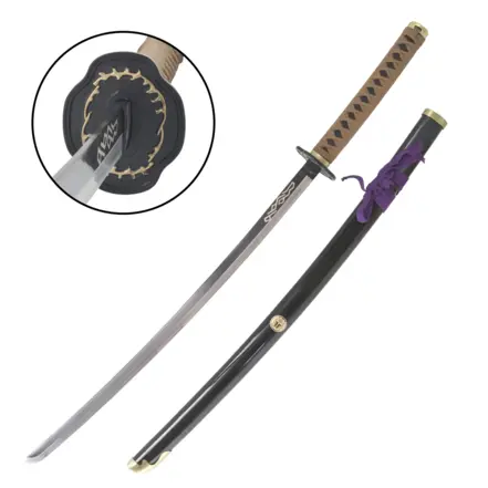 Zberateľská katana Honebami Toushirou z anime série Touken Ranbu vyrobená z karbonovej ocele s kovovou záštitou Tsuba, drevenou rukoväťou Tsuka a drevenou pošvou Saya.