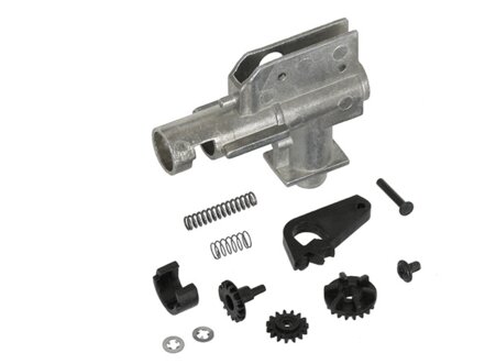 Kompletný mechabox typ 2. Zhodný, ako dáva firma Cyma do svojich nových zbraní M4. Obsahuje kovový tŕň s ložiskom, pružinu ekvivalentu M120, kovová 7mm ložiska..atd. Kabeláž je dlhá s vedením do predpažbia. Súčasťou balenia je aj motors dlhú oskou. Jedná sa o originálny diel výrobcu Cyma.